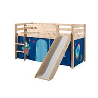 Hochbett aus massiver Kiefer. Inklusive Rolllattenrost, Stoffvorhang und wahlweise mit Rutsche. Der vordere Vorhang hat einen Durchlass, der hochgerollt werden kann. Die Textilien sind 100% Baumwolle, bei 30° waschbar. Der umlaufende Absturzschutz, die breiten Trittstufen zum sicheren Hinauf- und Hinabsteigen, sowie die hochwertige Verarbeitung und gute Stabilität, zeichnen diesen Artikel aus. Detail: Inklusive Textil-Set: Vorhang, Inklusive Rolllattenrost, Leiter beidseitig montierbar. Ausführungen: Ausführung 1: Ohne Rutsche. Außenmaße 106x210 cm, Ausführung 2: Mit Rutsche. Außenmaße 218x210 cm. Liegefläche: 90x200 cm, Außenmaße siehe Ausführungen. Ca.-Maße: Höhe: je 114 cm, Einlasstiefe: 6 cm, Pfostenstärke: 6,5 x 6,5 cm, Max. Matratzenhöhe: 20 cm, Höhe unter der Liegefläche: 70 cm. Material: Kiefer massiv, FSC-zertifiziert, Textil-Set: 100% Baumwolle (30° Handwäsche). Wissenswertes: Ohne Matratze und Bettwaren, Mit Aufbauanleitung, Alles ca.-Maße.
