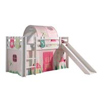 Hochbett aus massiver Kiefer. Inklusive Rolllattenrost, Textil-Set und wahlweise mit Rutsche. Der vordere Vorhang hat einen Durchlass, der hochgerollt werden kann. Die Textilien sind 100% Baumwolle, bei 30° waschbar. Der umlaufende Absturzschutz, die breiten Trittstufen zum sicheren Hinauf- und Hinabsteigen, sowie die hochwertige Verarbeitung und gute Stabilität, zeichnen diesen Artikel aus. Detail: Inklusive Textil-Set: Vorhang, Tunnel und 3 Taschen, Inklusive Rolllattenrost, Leiter beidseitig montierbar. Ausführungen: Ausführung 1: Ohne Rutsche. Außenmaße 106x210 cm, Ausführung 2: Mit Rutsche. Außenmaße 218x210 cm. Liegefläche: 90x200 cm, Außenmaße siehe Ausführungen. Ca.-Maße: Höhe: je 114 cm, Höhe mit Tunnel: je 214 cm, Einlasstiefe: 6 cm, Pfostenstärke: 6,5 x 6,5 cm, Max. Matratzenhöhe: 20 cm, Höhe unter der Liegefläche: 70 cm, Maße Tunnel (B/T/H): 90/86/100 cm. Material: Kiefer massiv, FSC-zertifiziert, Textil-Set: 100% Baumwolle (30° Handwäsche). Wissenswertes: Ohne Matratze und Bettwaren, Mit Aufbauanleitung, Alles ca.-Maße.