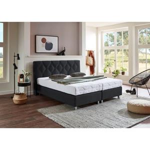 Produktdetails: Details Kopfteil: Mit Rautenmuster gesteppt, Details Matratzenbezug: abziehbar und waschbar bei 60u00b0C, Farbe: Farbe: schwarz, Farbe Füße: silber verchromt, Ausstattung & Funktionen: Anzahl Matratzen: 2, Härtegrad Matratze: H3, Matratze Körpergewicht bis: 100 kg, Art Matratze: 5-Zonen-Tonnentaschen-Federkernmatratze, Anzahl Federn Matratze pro mu00b2: 290, Anzahl Liegezonen Matratze: 5, Art Topper: Kaltschaum-Topper, Raumgewicht Topper: 35 kg/mu00b3, Art Unterbox: Bonnell-Federkern, Anzahl Federn Unterbox pro mu00b2: 104, Maßangaben: Breite Liegefläche: 160 cm, Länge Liegefläche: 200 cm, Breite: 175 cm, Länge: 210 cm, Höhe Kopfteil: 110 cm, Höhe Bettseite: 34 cm, Höhe Füße: 10 cm, Höhe Topper: 7 cm, Höhe Matratze: 20 cm, Höhe Unterbox: 34 cm, Liegehöhe: 71 cm, Bodenfreiheit: 10 cm, Hinweis Maßangaben: Alle Angaben sind ca.-Maße., Material: Bezug Matratze: Baumwollmix, Material Füße: Metall, Information Materialzusammensetzung: Bezug Bett: Microvelours (100% Polyester) oder Feinstruktur (100% Polyester), Bezug Bonnell-Federkernmatratze: 100% Polyester, Bezug Kaltschaummatratze: 100% Polyester, Bezug Tonnentaschenfederkernmatratze: 80% Baumwolle, 20%Polyester, Bezug: Microvelours, Optik/Stil: Form Füße: eckig, Oberflächenbeschichtung Füße: verchromt, Allgemein: Ausführung: Kaltschaum-Topper, Lieferung & Montage: Aufbauhinweise: inklusive Aufbauanleitung - eine zweite Person zum Aufbau wird empfohlen, Lieferzustand: teilmontiert, Hinweise: Pflegehinweise Bezug Topper: 60u00b0C Maschinenwäsche