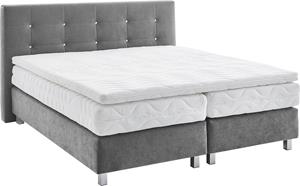 Produktdetails: Details Kopfteil: gesteppt, mit Knöpfen in Kristalloptik, Farbe: Farbe: grau, Farbe Füße: silberfarben, Ausstattung & Funktionen: Anzahl Matratzen: 2, Härtegrad Matratze: H3, Matratze Körpergewicht bis: 100 kg, Art Matratze: 5-Zonen-Taschen-Federkernmatratze, Anzahl Federn Matratze pro mu00b2: 290, Anzahl Liegezonen Matratze: 5, Art Unterbox: Bonnell-Federkern, Anzahl Federn Unterbox pro mu00b2: 104, Maßangaben: Breite Liegefläche: 180 cm, Länge Liegefläche: 200 cm, Breite: 195 cm, Länge: 210 cm, Höhe Kopfteil: 110 cm, Höhe Matratze: 20 cm, Liegehöhe: 58 cm, Bodenfreiheit: 10 cm, Hinweis Maßangaben: Alle Angaben sind ca.-Maße., Material: Bezug Matratze: Baumwollmix, Material Füße: Metall, Information Materialzusammensetzung: Bezug: Microvelours 100% Polyester, Polsterung: 100% Polyester, Material Matratzenbezug: Baumwolle, Polyester, Bezug: Microvelours, Optik/Stil: Oberflächenbeschichtung Füße: verchromt, Allgemein: Ausführung: Ohne Topper, Lieferung & Montage: Aufbauhinweise: inklusive Aufbauanleitung - eine zweite Person zum Aufbau wird empfohlen, Lieferzustand: teilmontiert