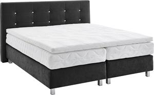 Produktdetails: Details Kopfteil: gesteppt, mit Knöpfen in Kristalloptik, Farbe: Farbe: schwarz, Farbe Füße: silberfarben, Ausstattung & Funktionen: Anzahl Matratzen: 2, Härtegrad Matratze: H2, Matratze Körpergewicht bis: 80 kg, Art Matratze: 7-Zonen-Kaltschaummatratze, Anzahl Liegezonen Matratze: 7, Raumgewicht Matratze: 35 kg/mu00b3, Art Topper: Kaltschaum-Topper, Raumgewicht Topper: 35 kg/mu00b3, Art Unterbox: Bonnell-Federkern, Anzahl Federn Unterbox pro mu00b2: 104, Maßangaben: Breite Liegefläche: 160 cm, Länge Liegefläche: 200 cm, Breite: 175 cm, Länge: 210 cm, Höhe Kopfteil: 110 cm, Höhe Topper: 7 cm, Höhe Matratze: 16 cm, Liegehöhe: 61 cm, Bodenfreiheit: 10 cm, Hinweis Maßangaben: Alle Angaben sind ca.-Maße., Material: Bezug Matratze: Polyester, Material Topper: Kaltschaum, Bezug Topper: Polyester, Material Füße: Metall, Information Materialzusammensetzung: Bezug: Microvelours 100% Polyester, Polsterung: 100% Polyester, Material Matratzenbezug: Polyester, Bezug: Microvelours, Optik/Stil: Oberflächenbeschichtung Füße: verchromt, Allgemein: Ausführung: Mit Kaltschaum-Topper, Lieferung & Montage: Aufbauhinweise: inklusive Aufbauanleitung - eine zweite Person zum Aufbau wird empfohlen, Lieferzustand: teilmontiert, Hinweise: Pflegehinweise Bezug Topper: 60u00b0C Maschinenwäsche