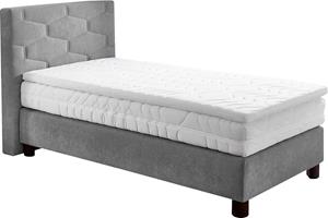 Produktdetails: Details Kopfteil: Attraktive Steppung, Farbe: Farbe: grau, Farbe Füße: braun, Farbe Topper: weiß, Ausstattung & Funktionen: Anzahl Matratzen: 1, Härtegrad Matratze: H3, Matratze Körpergewicht bis: 100 kg, Art Matratze: Bonnell-Federkernmatratze, Art Topper: Kaltschaum-Topper, Raumgewicht Topper: 35 kg/mu00b3, Art Unterbox: Bonnell-Federkern, Anzahl Federn Unterbox pro mu00b2: 104, Maßangaben: Breite Liegefläche: 120 cm, Länge Liegefläche: 200 cm, Breite: 135 cm, Länge: 210 cm, Höhe Kopfteil: 110 cm, Höhe Topper: 7 cm, Höhe Matratze: 16 cm, Höhe Unterbox: 35 cm, Liegehöhe: 61 cm, Bodenfreiheit: 10 cm, Hinweis Maßangaben: Alle Angaben sind ca.-Maße., Material: Bezug Matratze: Polyester, Material Topper: Kaltschaum, Bezug Topper: Polyester, Material Füße: Holz, Information Materialzusammensetzung: Bezug: 100% Polyester, Material Matratzenbezug: Polyester, Bezug: Microvelours, Allgemein: Ausführung: Kaltschaum-Topper, Lieferung & Montage: Aufbauhinweise: inklusive Aufbauanleitung - eine zweite Person zum Aufbau wird empfohlen, Lieferzustand: teilmontiert, Hinweise: Pflegehinweise Bezug Topper: 60u00b0C Maschinenwäsche, Wissenswertes: Herstellungsland: Made in Germany