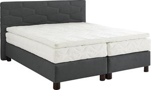 Produktdetails: Details Kopfteil: Attraktive Steppung, Farbe: Farbe: charcoal, Farbe Füße: braun, Farbe Topper: weiß, Ausstattung & Funktionen: Anzahl Matratzen: 2, Härtegrad Matratze: H2, Matratze Körpergewicht bis: 80 kg, Art Matratze: 7-Zonen-Kaltschaummatratze, Anzahl Liegezonen Matratze: 7, Raumgewicht Matratze: 35 kg/mu00b3, Art Unterbox: Bonnell-Federkern, Anzahl Federn Unterbox pro mu00b2: 104, Maßangaben: Breite Liegefläche: 180 cm, Länge Liegefläche: 200 cm, Breite: 195 cm, Länge: 210 cm, Höhe Kopfteil: 110 cm, Höhe Matratze: 16 cm, Höhe Unterbox: 35 cm, Liegehöhe: 54 cm, Bodenfreiheit: 10 cm, Hinweis Maßangaben: Alle Angaben sind ca.-Maße., Material: Bezug Matratze: Polyester, Bezug Topper: Polyester, Material Füße: Holz, Information Materialzusammensetzung: Bezug: 100% Polyester, Material Matratzenbezug: Polyester, Bezug: Feinstruktur, Allgemein: Ausführung: Ohne Topper, Lieferung & Montage: Aufbauhinweise: inklusive Aufbauanleitung - eine zweite Person zum Aufbau wird empfohlen, Lieferzustand: teilmontiert, Wissenswertes: Herstellungsland: Made in Germany
