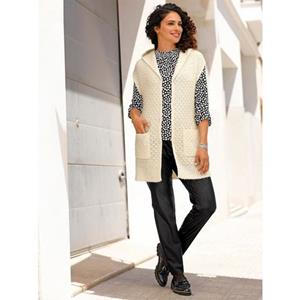 Kuschelig weich und wärmend präsentiert sich die Longweste in attraktivem Waben-Strickmuster. Schmeichelnd offene Form mit Kapuze, überschnittenen Schultern, 2 aufgesetzten Taschen und breitem Rippabschluss am Saum. 100% Polyacryl. Maschinenwäsche.