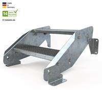 Terrassentreppe mit Gitterrost Stufen. Feuerverzinkt, hochstabil. Höhen von 29 bis 66 cm. Stufen Länge wählbar: 60 bis 120 cm . Gerade Stahltreppe "Optigo" mit 2 Stufen = Gitterroststufen nach Wahl. Trittsicher mit nutzbarer Stufentiefe: 27 cm. Stabile Außentreppe wählbar mit Treppengeländer. System Außentreppe mit Stahlgitter-Stufen, witterungsbeständig und feuerverzinkt. Stahlstufen Be...