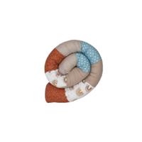 Die hübsche Bettschlange ist der ideale Schutz für dein Kind. Sie verhindert, dass sich das Baby an den Gitterstäben verletzt oder im Schlaf daran stößt. So sorgt die Baby Bettrolle für einen erholsamen und entspannten Schlaf. Allerdings bietet die Nestchenschlange noch zusätzliche Vorteile. Denn die gut gepolsterte und weiche Baby Bettrolle vermittelt dem Baby ein Nestgefühl. Dies wiederum sorgt für Sicherheit und Geborgenheit. Eine Bettschlange, auch als Babybett Kantenschutz bekannt, ist für Babys in jedem Alter eine sichere Lösung. Ist das Kind größer, eignet sich die Bettschlange hervorragend zum Kuscheln. Die hübsche Nestchenschlange mit unterschiedlichen Motiven ist 200 Zentimeter lang und 13 Zentimeter dick. Der weiche Außenstoff aus 100 % ÖkoTex zertifizierter Baumwolle ist mit einer geräuschlosen Füllung aus ÖkoTex Polyester versehen. Die Baby Bettrolle ist bei 30°C maschinenwaschbar. Produktdetails: Babybett Kantenschutz 200 cm lang Durchmesser 13 cm 10 Motiv-Patches Materialien: 100 % Baumwolle Polyesterfüllung für die Polsterung Zertifiziert nach STANDARD 100 by OEKO-TEX: 19.0.71418 HOHENSTEIN HTTI Alle Materialien sind schadstoffgeprüft und antiallergisch Maschinenwaschbar bei 30°C Allgemeine Vorteile: Passt sich jeder Form an Babybett-Kantenschutz ist ideal als Lückenfüller zwischen Eltern- und Beistellbettchen Baby-Bettrolle bei Bewegung absolut geräuschlos (kein Knistern) Zuverlässiger Schutz für das Baby Hergestellt in einem kleinen EU-Familienunternehmen Passt zu anderen Produkten dieser ULLENBOOM-Produktserie