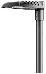 LED-Aufsatz- und Ansatzleuchte der nächsten Generation mit klarer Linienführung und attraktiver Silhouette. Mit Leistungsreduzierung über Steuerphase. Das Abschalten einer Steuerphase bewirkt eine Einstellung des Leuchtenlichtstroms auf 50 %. Aufsatz- und Ansatzmontage auf bzw. an Mastzopf Ø 76 mm. Neigungswinkel 0°...90°, in 5°-Schritten einstellbar, skaliert. Einfach und schnell von Aufsatz- zur Ansatzleuchte mittels einer von außen zugänglichen Schraube einstellbar. Die Montage an Wände ist über separat zu bestellendes Zubehör möglich. Die Mastbefestigung erfolgt mit zwei Befestigungsschrauben nach EN 60598-2-3 aus Edelstahl. Mittels separat zu bestellender Reduzierstücke auch zur Montage an Masten mit Zopf Ø 42, 48 und 60 mm geeignet. In MLT-Ausführung (Multi-Lens-Technologie), bestehend aus hocheffizienten, UV- und temperaturbeständigen Linsensystemen in Vierfachanordnung. Mit asymmetrisch breit strahlender Lichtstärkeverteilung. Zur flexiblen Anpassung an kundenspezifische Beleuchtungsaufgaben stehen weitere Abstrahlcharakteristiken zur Verfügung. Der nachträgliche Einbau einer rückseitigen / seitlichen Abschirmung ist als separat zu bestellendes Zubehör möglich. LED-System bestehend aus 6 MLT-LED-Modulen mit jeweils 4 LED. Bemessungslichtstrom 4200 lm, Bemessungsleistung 29,00 W, Leuchten-Lichtausbeute 144 lm/W. Lichtfarbe neutralweiß, ähnlichste Farbtemperatur (CCT) 4000 K, allgemeiner Farbwiedergabeindex (CRI) Ra größer als 70. Farborttoler