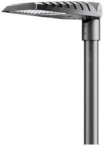 LED-Aufsatz- und Ansatzleuchte der nächsten Generation mit klarer Linienführung und attraktiver Silhouette. Mit autarker Leistungsreduzierung über integrierte Auswerteelektronik. Reduzierung des Leuchtenlichtstroms auf 50 % für einen Zeitraum von 7 Stunden (-2h/+5h). Aufsatz- und Ansatzmontage auf bzw. an Mastzopf Ø 76 mm. Neigungswinkel 0°...90°, in 5°-Schritten einstellbar, skaliert. Einfach und schnell von Aufsatz- zur Ansatzleuchte mittels einer von außen zugänglichen Schraube einstellbar. Die Montage an Wände ist über separat zu bestellendes Zubehör möglich. Die Mastbefestigung erfolgt mit zwei Befestigungsschrauben nach EN 60598-2-3 aus Edelstahl. Mittels separat zu bestellender Reduzierstücke auch zur Montage an Masten mit Zopf Ø 42, 48 und 60 mm geeignet. In MLT-Ausführung (Multi-Lens-Technologie), bestehend aus hocheffizienten, UV- und temperaturbeständigen Linsensystemen in Vierfachanordnung. Mit asymmetrisch breit strahlender Lichtstärkeverteilung. Zur flexiblen Anpassung an kundenspezifische Beleuchtungsaufgaben stehen weitere Abstrahlcharakteristiken zur Verfügung. Der nachträgliche Einbau einer rückseitigen / seitlichen Abschirmung ist als separat zu bestellendes Zubehör möglich. LED-System bestehend aus 8 MLT-LED-Modulen mit jeweils 4 LED. Bemessungslichtstrom 6800 lm, Bemessungsleistung 54,00 W, Leuchten-Lichtausbeute 125 lm/W. Lichtfarbe warmweiß, ähnlichste Farbtemperatur (CCT) 2700 K, allgemeiner Farbwiedergabeindex (CRI) Ra größ