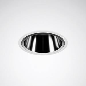 Kompaktes LED-Downlight in runder Bauform. Einbau-Downlight mit Rand für gesägte Deckenöffnungen. Deckenausschnittmaß Ø 210 mm. Sanierungsplatten für den Einbau in bereits vorhandene Deckenöffnungen mit unpassenden Maßen sind als separat zu bestellendes Zubehör verfügbar. Einbautiefe größer als= 127 mm, Leuchtenhöhe 130 mm. Mit hochglänzend bedampftem Kunststoffreflektor. Farbe des Deckeneinbaurahmens: weiß. Lichtverteilungscharakteristik und Halbwertswinkel: 80° Extreme Wide Flood. Lichtlenkung durch Diffusor/Reflektor. Begrenzung der Direktblendung gemäß UGR 22. Mit einem LED-Modul. Leuchtenlichtstrom 2.600 lm, Anschlussleistung 23 W, Leuchten-Lichtausbeute 113 lm/W. Lichtfarbe Neutralweiß, ähnlichste Farbtemperatur (CCT) 4000 K, allgemeiner Farbwiedergabeindex (CRI) Ra= 80. Farborttoleranz (initial MacAdam) = 3 SDCM entspricht einer sehr hohen Farbgleichheit der LED in der Anwendung. Mittlere Lebensdauer L90(tq 25 °C) = 50.000 h, mittlere Lebensdauer L80(tq 25 °C) = 70.000 h. Zulässige Umgebungstemperatur (ta): -20°C - +25°C. Gehäuse und Kühlkörper aus Aluminium-Druckguss. Schutzklasse (EN 61140): II, Schutzart (DIN EN 60529): IP20. Stoßfestigkeitsgrad nach IEC 62262: IK02/0,2 J, Prüftemperatur Glühdrahttest gemäß IEC 60695-2-11: 850 °C. Mit 5-poliger Anschlussklemme bis 2,5 mm² für Netzanschluss sowie separater 5-poliger Netzweiterleitungsbox. Der netzseitige Anschluss des Vorschaltgerätes erfolgt mittels Anschlussklemme. Mit elektroni