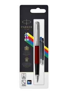Füllhalter (Patronenfüllsystem) Jotter; Zierteile, Kappe und Feder aus Edelstahl; Kratzfester, hochglänzender Kunststoffschaft und Vordereteil; Linienbreite: M; Schreibfarbe: blau;