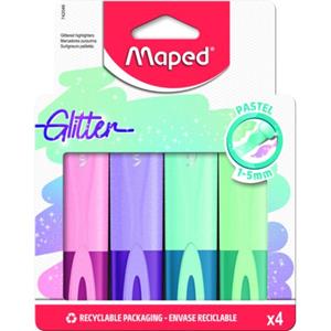 Tinte mit funkelnden Effekten, Keilspitze, Strichstärke:1,0 - 5,0 mm, mit Clip, für Papier & Fax, sortiert in denPastellfarben blau, rosa, lila, grünbeinhaltet: 4 Textmarker(M742046)