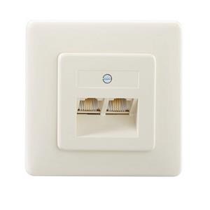 UAE-Anschlussdose, 2-fach, Unterputz, mit schaltbaren Widerständen, 2 x 4-polig, 4 Schraubkontakte, mit Spreizkrallen, reinweiß (ähnlich RAL 9010) 8-polige Buchsenelemente, für 6- und 8-polige Stecker RJ11/12-Tauglichkeit ohne zusätzliche Reduzierelemente Metalltragring mit Spreizkrallen Stecköffnung schräg nach unten geneigt Schraubkontakte für einen Leiter bis 1mm Ø, 2 Adern je Kontakt alternativ LSA-Klemmen für einen Leiter 0,4-0,63 mm Ø, AW 26-22, Wiederbelegbarkeit größer als 50-mal vergoldete Kontaktoberflächen Widerstände zu-/abschaltbar über Steckbrücken Nennspannung: 125 V Nennstrom: 1 A bei 50° C Spannungsfestigkeit: 1000 V, 50 Hz, 1 Min. Kontaktwiderstand:kleiner als 20 mO entsprechend nachfolgender Normanforderungen: TIA/EIA-568-B.2-2001, Cat. 3 Lebensdauer: größer als 2500 Steckzyklen passend zu UAE-Designabdeckungen der Schalterindustrie (Berker, Busch-Jaeger, GIRA, Jung, Merten, u.a.)