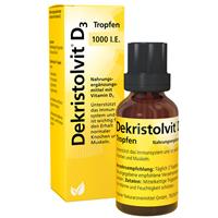 Nahrungsergänzungsmittel sind kein Ersatz für eine abwechslungsreiche und ausgewogene Ernährung und eine gesunde Lebensweise. Dekristolvit D3 1000 I.e. Tropfen Dekristolvit D3 - Für alle die gut versorgt sein wollen Warum geht es uns gut, wenn die Sonne scheint? Unter anderem deshalb, weil unser Körper dann in der Lage ist, ausreichend Vitamin D herzustellen. Für eine ausreichende Versorgung ist daher genügend Sonnenlicht notwendig. Doch dies ist oftmals gar nicht so leicht zu erreichen. Etwa 2/3 der Bevölkerung gelingt es nicht ausreichend wirksames Vitamin D zu bilden. Unser Körper braucht Vitamin D – denn ohne D fehlt dir was! Vitamin D unterstützt das Immunsystem, trägt zum Erhalt gesunder Knochen, Zähne und Muskeln bei und ist an zahlreichen Stoffwechselvorgängen im Körper beteiligt. Nur wenige Nahrungsmittel enthalten Vitamin D Mit der Nahrung nehmen wir etwa 10 - 20 % unseres täglichen Vitamin D-Bedarfs auf. Die meisten Lebensmittel enthalten kein oder nur wenig Vitamin D. Am reichhaltigsten an Vitamin D sind Fische wie Wildlachs, Hering oder Kabeljau. In anderen Nahrungsmitteln ist Vitamin D in deutlich geringerer Menge enthalten. Warum warten, bis Mangelerscheinungen auftreten? Viel einfacher ist es dafür zu sorgen, die tägliche Vitamin D-Menge bequem zuzuführen. Das ist für Sie besonders bedeutsam, wenn Sie zu einer der folgenden Personengruppen gehören: Ältere Menschen ab 65 Jahren Menschen mit dunklerer Haut Menschen, die regelmäßig Sonnenschutzmittel oder Tagespflege mit Lichtschutzfaktor verwenden Personen, die ihren Körper grundsätzlich mit viel Kleidung bedecken Menschen, die aufgrund ihrer Ernährung nicht ausreichend Vitamin D zuführen, wie Vegetarier und Veganer Dekristolvit D3 auf einen Blick: Trägt zu einer normalen Funktion des Immunsystems bei Trägt zur Erhaltung normaler Knochen und Muskeln bei Erhältlich in 4 Wirkstärken Frei von Gluten, Lactose, Fructose und Gelatine Entwickelt und hergestellt in Deutschland Vitamin D trägt zu einer normalen Funktion des Immunsystems bei trägt zur Erhaltung normaler Knochen bei trägt zur Erhaltung einer normalen Muskelfunktion bei trägt zu einem normalen Calciumspiegel im Blut bei trägt zur Erhaltung normaler Zähne bei Zutaten: Mittelkettige Triglyceride, Cholecalciferol. Zusammensetzung pro Tablette % NRV Vitamin D3 25 µg (= 1000 I.e.) 500 % Verzehrempfehlung: Täglich 2 Tropfen zu einer Mahlzeit verzehren. Hinweis: Die angegebene empfohlene Tagesmenge darf nicht überschritten werden. Aufbewahrung: Kühl (6-25 °C) und lichtgeschützt lagern. Außerhalb der Reichweite von Kindern aufbewahren. Nettofüllmenge: 10 ml Hersteller: Hübner Naturarzneimittel GmbH Schloßstr. 11-17 D-79238 Ehrenkirchen