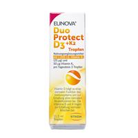Nahrungsergänzungsmittel sind kein Ersatz für eine abwechslungsreiche und ausgewogene Ernährung und eine gesunde Lebensweise. Eunova DuoProtect D3+K2 1000 I.e./50 µg Tropfen Vitamin D trägt zu einer normalen Funktion des Immunsystems und zur Erhaltung einer normalen Muskelfunktion bei. Die Vitamine D und K tragen zur Erhaltung normaler Knochen bei. 11,5ml Tropfen Inklusive Pipette zur einfachen Dosierung Zutaten: Mittelkettige Triglyceride, Vitamin K2 (Menachinon), Vitamin D3 (Cholecalciferol), Antioxidationsmittel a-Tocopherol. Eunova DuoProtect D3 + K2 ist für Vegetarier geeignet. Dieses Produkt ist Frei von Konservierungsmitteln, künstlichen Farbstoffen,Soja, Milcheiweiß, Gluten und Laktose. Zusammensetzung pro 3 Tropfen % Nrv* Vitamin D3 1000 I.e. (25µg) 500% Vitamin K2 50 µg 67% *Referenzmenge gemäß Lebensmittelinformationsverordnung Verzehrempfehlung: 3 Tropfen 1-mal täglich direkt in den Mund eintropfen oder in etwas Flüssigkeit geben. Die fettlöslichen Vitamin D3 und K2 sind in Öl gelöst, daher kann Eunova DuoProtect D3 + K2 unabhängig von den Mahlzeiten eingenommen werden. Hinweis: Personen, die gerinnungshemmende Arzneimittel (vom Cumarin-Typ) einnehmen, sollten vor dem Verzehr von Vitamin-K-haltigen Nahrungsergänzungsmitteln ihren Arzt befragen. Aufbewahrung: Bei Raumtemperatur und vor Licht geschützt gut verschlossen lagern. Nettofüllmenge: 11,5ml Tropfen Herstellerdaten: Stada Arzneimittel AG Stadastraße 2-18 61118 Bad Vilbel