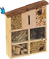 Mit der Insekten Nisthilfe tragen Sie aktiv zum Artenschutz bei. Käfern, Bienen, Florfliegen und anderen Insekten dient der Insektennistkasten als Überwinterungshilfe. In den Kammern des Wildbienenhotels mit unterschiedlichen Befüllungsmaterialien können sich die Insekten richtig wohlfühlen. Hängen Sie das Marienkäferhaus in Ihren Garten oder stellen Sie es auf Ihren Balkon und beobachten das faszinierende Treiben. Ein spannendes Erlebnis für Kinder und Erwachsene! Insektenhotel im Detail - Maße H x B x T: ca. 34 x 27,5 x 8 cm - Bohrlöcher D: ca. 0,5 cm - Bambusröhrchen D: ca. 0,3 - 1 cm - Schlitz H x B: ca. 6,5 x 1 cm - Gewicht: ca. 1,4 kg - Material: Tannenholz, Zapfen, Bambus - Farbe: Natur Bienenhaus für den Garten - Für Wildbienen, Florfliegen und andere Insekten - Kammern mit verschiedenen Füllmaterialien - Extra Kammer mit Öffnung für Schmetterlinge - Tolle Beobachtungsmöglichkeit für Kinder - Flexibel - Zum Hinstellen oder Aufhängen - Mit dekorativen Schrägdach aus Rinde So bringen Sie Leben in Ihr Insektenhaus - Für ausreichend Nahrung durch heimische Wildblumen und Kräuter sorgen - Nach Süden ausrichten, um eine lange Sonneneinstrahlung zu ermöglichen - An einem trockenen und witterungsgeschützten Platz anbringen - Im Winter nicht ins Warme bringen, um frühzeitiges Schlüpfen zu vermeiden - Bieten Sie an heißen Tagen auch Wasser in einer Insektentränke an Lieferumfang - 1x Insektenhotel - Dekorationsartikel sind nicht im Lieferumfang enthalten Weitere Hinweise Form: Vielseitiges Insektenhotel mit Schrägdach aus Rinde - HBT: ca. 34 x 27,5 x 8 cm - Für Garten Lerneffekt: Das Marienkäferhotel ist für Erwachsene und Kinder eine tolle Beobachtungsmöglichkeit Nisthilfe: Insektenhaus für Wildbienen, Florfliegen und andere Insekten - Artenvielfalt unterstützen Material: Bienenhotel gefüllt mit Holz, Bambusröhrchen und Zapfen - Mit Schlitz für Schmetterlinge Basics: Bienenhaus zum Hinstellen oder Aufhängen - An sonniger, wettergeschützter Stelle anbringen