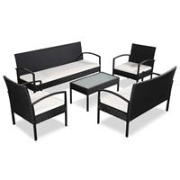 Dieses 5-teilige Poly Rattan Sofa-Set, bestehend aus 1 dreisitzigen Sofa, 1 zweisitzigen Sofa, 2 Einzelsofas, 1 Couchtisch und 4 Sitzkissen, bietet eine stilvolle Sitzecke für Ihren Garten oder Ihre Terrasse. Dank des wasserabweisenden PE-Rattans ist das Gartensofa-Set leicht zu reinigen, strapazierfähig und für den täglichen Außeneinsatz geeignet. Der Stahlrahmen sorgt für Langlebigkeit und Stabilität; dank der Leichtkonstruktion lässt sich das Möbelset nach Belieben verlegen. Dieses Set wird auch mit hochkomfortablen, dicken Sitzpolstern geliefert, die den höchsten Sitzkomfort bieten. Die pflegeleichten Polyesterbezüge können auch abgenommen und gewaschen werden. Das Poly Rattan Set bietet absolute Flexibilität und lässt sich leicht an jede Umgebung anpassen. Die Endmontage gelingt mühelos. Hinweis: Wir empfehlen, das Set bei Regen, Schnee und Frost abzudecken, um eine lange Lebensdauer zu gewährleisten.