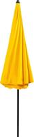 Hochwertiger Sonnenschirm in klassischem Design ideal für den Einsatz am Balkon geeignet. Das Gestell besteht aus epoxydbeschichtetem Stahl, mit Knickfunktion und innen verzinktem Unterrohr, die Streben aus stabilem Federstahl. Der Schieber zum Handöffnen sowie das Drehrad zur Höhenverstellung sind gummiert (sog. Softgrip - Ausführung) und leicht in der Handhabung. Der wetterfeste Bezug ist mit einem Volant versehen und aus optisch ansprechendem Strukturpolyester, mit hoher Lichtechtheit und einem starken UV-Schutz von LSF 50 +,. Befestigungsvarianten a) Montage über Rasendorn (Befestigung im Erdreich) b) Montage über 30 kg Granitsockel (hochwertiger Schirmsockel) c) Montage über Balkonsockel (nur in Verbindung mit Balkonklammer verwendbar)