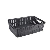 Dieser Wäschekorb aus Kunststoff ist für trockene und feuchte Wäsche gleichermaßen geeignet. Auch beim Einkaufen und Transportieren von Gegenständen ist der Korb ein praktischer Haushaltshelfer. Weitere Hinweise Wäschekorb aus Kunststoff Vielseitig verwendbar Mit Lüftungsschlitzen und seitlichen Griffen Länge: 26 cm Breite: 40 cm Höhe: 11,5 cm