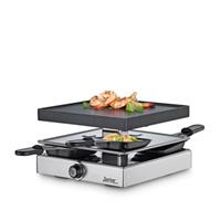 Food-Trends kommen und gehen, Klassiker bleiben. Das Raclette gehört definitiv dazu. Denn es steht für entspannte Gastlichkeit. Das Raclette4 CLASSIC von Spring ist ideal für einen gemütlichen Abend mit bis zu vier Personen. Jeder füllt sein Pfännchen nach Geschmack und Experimentierfreude. Schwarzwälder Schinken trifft auf Walnuss und Birne, wer es ausgefallener mag, bringt Mango oder Ananas ins Spiel. Die exotischen Früchte harmonieren bestens mit Meeresfrüchten, die auf der Grillplatte aus Aluminium garen. Auch Steakstreifen und Würstchen finden hier Platz, sogar Rösti-Ecken wurden schon auf der ersten Etage des Raclettes gesichtet. Im Untergeschoss stellen Sie auf der praktischen Ablage Pfännchen ab, die auf ihre nächste Füllung warten. Das Raclette gibt es in den Farben Schwarz, Rot und Silber. Material: Gehäuse aus Edelstahl. Grillplatte aus Aluminium antihaftbeschichtet und abnehmbar. Im Lieferumfang enthalten: 4 Pfännchen, 4 Schaber. Mit Gebrauchsanleitung. Weitere Hinweise mit Grillplatte für Fleisch und Fisch für bis zu 4 Personen Raclette in 3 Farben Lieferung: Gehäuse, Grillplatte, 4 Pfännchen, 4 Schaber, Gebrauchsanleitung für bis zu 4 Personen, mit Grillplatte für Fleisch und Fisch Länge: 21,5 cm Breite: 21,5 cm Höhe: 13,5 cm Unsere Entsorgungshinweise zu Batterien und Elektrogeräten finden Sie auf https://www.yomonda.de/c/entsorgungshinweise.html
