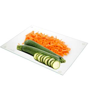 ZELLER Glasschneideplatte Schneideplatte Schneidebrett Diese Schneideplatte aus nahezu unzerbrechlichem ESG-Glas stellt Ihnen zusätzliche Arbeitsfläche bereit. Sie ist hitzebeständig, spülmaschinenfest, hygienisch und äußerst schnittfest. Bitte nur auf abgekühlten Kochfeldern verwenden! Hochwertige Schneideplatte Aus Glas Hitzebeständig bis 220 Grad Maße: 40 cm lang, 30 cm breit Markenprodukt deutscher Firma Zeller