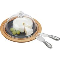 Servieren Sie Ihren GÃsten KÃse auf optisch ansprechende Weise zum Frühstück oder Abendbrot. Das KÃsebrett besteht aus natürlich schönem Bambus und einer Platte aus Schiefer. Es wird durch ein 2-teiliges KÃsebesteck ergÃnzt. Mit dem KÃsebesteck können Sie die KÃsestücke perfekt schneiden und auf Ihren Teller heben. Die Kunststoff-KÃseglocke hat einen Griff in Kristall-Optik und hilft Ihnen, auch intensiv duftenden KÃse wie Limburger geruchsneutral aufzubewahren. KÃseglocke im Detail - Maße mit Glocke H x D: ca. 13 x 25 cm - Außenmaße Glocke H x D: ca. 11,5 x 21,5 cm - Maße Messer H x B x T: ca. 13,5 x 2,5 x 2 cm - Maße Gabel H x B x T: ca. 13,5 x 3,5 x 2 cm - Material: Bambus, Schiefer, Kunststoff, Stahl - Gewicht komplett: ca. 0,9 kg - Farbe: natur, anthrazit Natürliche KÃseaufbewahrung - Ideal für Ihre KÃseplatte - Für Cheddar, Limburger, Gorgonzola uvm. - Transparente Kunststoff-Glocke mit Griff - Mit runder Aussparung für die Glocke - KÃse hebt sich von der Schieferplatte ab