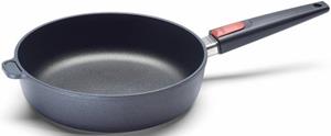 WOLL Hochrandpfanne »Titanium NOWO« aus hochwertigem Aluminium-Guss mit dauerhaft beständiger und sehr widerstandsfähiger Hightech-Titanium-Hartgrund-Antihaft-Versiegelung. Der ca. 8 mm starke Thermoboden sorgt für optimale Wärmespeicherung. Kein verziehen selbst bei hohen Temperaturen. Dank des abnehmbaren Griffs lässt sich die Pfanne problemlos aufbewahren und reinigen. Der abnehmbare Stiel macht die Pfanne der NOWO-Serie obendrein zur backofentauglichen Auflaufform. Die Pfannen dieser Serie sind bis 250°C backofenfest. Made in Germany! Spülmaschinengeeignet. Geeignet für alle Herdarten, auch für Induktion.