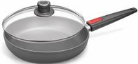 WOLL Pfanne »Titanium NOWO« aus hochwertigem Aluminium-Guss mit dauerhaft beständiger und sehr widerstandsfähiger Hightech-Titanium-Hartgrund-Antihaft-Versiegelung. Der ca. 8 mm starke Thermoboden sorgt für optimale Wärmespeicherung. Kein verziehen selbst bei hohen Temperaturen. Dank des abnehmbaren Griffs lässt sich die Pfanne problemlos aufbewahren und reinigen. Der abnehmbare Stiel macht die Pfanne der NOWO-Serie obendrein zur backofentauglichen Auflaufform. Die Pfannen und Deckelknöpfe dieser Serie sind bis 250°C backofenfest. Made in Germany! Spülmaschinengeeignet. Geeignet für alle Herdarten, außer Induktion. Die Gusspfanne »Titanium NOWO« aus dem Hause WOLL hat eine Höhe von ca. 5 cm und wird inklusive Glasdeckel und abnehmbarem Stiel geliefert.