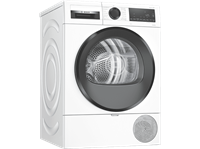 Der Wärmepumpentrockner WQG233D40 von BOSCH glänzt durch eine hervorragende Ausstattung. Erstklassige Werte im Hinblick auf den Energieverbrauch liefert dieser Wärmepumpentrockner mit der Energieeffizienzklasse A+,+,+, (Skala: A+,+,+, bis D). Die Kapazitätsanforderungen von Familien mit bis zu 4 Personen stellen mit einem 8 kg Fassungsvermögen kein Problem dar. Mit einem Betriebsgeräusch von nur 64 dB nimmt man den WQG233D40 Wärmepumpentrockner akustisch kaum zur Kenntnis. Kondensationseffizienzklasse A ist die beste, die vergeben wird, denn durch sie erhöht sich die Luftfeuchtigkeit in der Umgebung des Trockners kaum und minimiert dadurch Schimmelbildung. Da das Modell über einen EasyClean Filter verfügt, hat man mit der Reinigung wenig Aufwand. Die qualitativ hochwertige Edelstahltrommel des WQG233D40 Wärmepumpentrockners garantiert eine lange Lebensdauer. Die Maße des Wärmepumpentrockners betragen 59,8 cm x 84,2 cm x 59,9 cm (BxHxT).