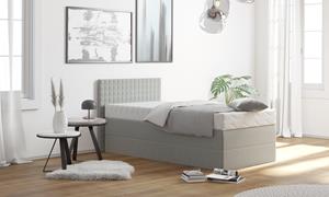 Produktdetails: Details Kopfteil: Karoversteppung, Details Matratzenbezug: Bezug: abnehmbar und waschbar bis 60u00b0C, Farbe: Farbe: grau, Ausstattung & Funktionen: Anzahl Matratzen: 1, Härtegrad Matratze: H3, Matratze Körpergewicht bis: 100 kg, Art Matratze: 7-Zonen-Kaltschaummatratze, Anzahl Liegezonen Matratze: 7, Raumgewicht Matratze: 35 kg/mu00b3, Art Unterbox: Bonnell-Federkern, Anzahl Federn Unterbox pro mu00b2: 104, Anzahl Zierkissen: 1, Maßangaben: Breite Liegefläche: 90 cm, Länge Liegefläche: 200 cm, Breite: 105 cm, Länge: 210 cm, Höhe Kopfteil: 110 cm, Höhe Matratze: 16 cm, Liegehöhe: 60 cm, Bodenfreiheit: 1 cm, Hinweis Maßangaben: Alle Angaben sind ca.-Maße., Material: Bezug Matratze: Polyester, Information Materialzusammensetzung: Bezug: 100% Polyester, Polsterwatte: 100% Polyester, Material Matratzenbezug: Polyester, Bezug: Samtvelours, Allgemein: Ausführung: Ohne Topper, Lieferung & Montage: Aufbauhinweise: inklusive Aufbauanleitung - eine zweite Person zum Aufbau wird empfohlen, Lieferzustand: teilmontiert, Hinweise: Pflegehinweise Bezug: absaugen, abstaubbar, pflegeleicht