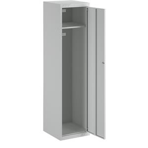 Garderobenschrank-System, mit Grund- und Anbauelementen, HxBxT 1800 x 450 x 500 mm, 1 Hutboden, 1 Kleiderstange, lichtgrau, Grundelement. Anlieferung = zerlegt. Höhe = 1800 mm. Tiefe = 500 mm. Breite = 450 mm. Korpusfarbe = lichtgrau RAL 7035. Türfarbe = lichtgrau RAL 7035. Verschlussart = Sicherheitszylinderschloss, verschiedenschließend. Anzahl Abteile = 1 Stück. Anzahl Fächer = 1 Stück. Abteilbreite = 450 mm. Material = Stahlblech, pulverbeschichtet. Abteilhöhe = 1800 mm. Innenausstattung = 1 Kleiderstange, 1 Hutboden. Ausführung = Grundelement. Innenbreite = 387 mm. Innenhöhe = 1433 / 260 mm. Innentiefe = 458 mm. Türart = Flügeltür. Anzahl Schlüssel = 2 Stück. Fachhöhe = 1433 / 260 mm. Fachbreite = 450 mm. Fachtiefe = 500 mm. Sockelhöhe = 50 mm. Konstruktion = Stecksystem. Oberfläche = einbrennlackiert. Umkleideschrank-System zum Kombinieren. Grund- und Anbauelemente zur Auswahl. Variable Innenausstattung. Stecksystem zur schraubenlosen Montage. Belüftung durch Lochbild in der Rückwand. Für alle Umkleidebereiche geeignet. Der flexible Garderobenschrank zum Kombinieren: Kreieren Sie Ihren individuellen Umkleidebereich mit diesem Schranksystem aus robustem Stahl. Die Grundelemente sind in zwei Breiten verfügbar. Mit gleicher Abmessung kombinieren Sie dazu die Anbauelemente mit geöffneter Schrankseite links. Die Montage geht blitzschnell und schraubenlos im Stecksystem. Für die Innenausstattung stehen Fachböden, Hutablage und Kleiderstange in verschiedenen Kombinationen zur Auswahl. Auch die Türfarben des lichtgrauen Korpus können variiert werden. Für eine optimale Belüftung des Umkleideschranks sorgt ein Lochbild der Rückenwand. Jeder Spind kann mit einem anders schließenden Zylinderschloss abgesperrt werden. Achtung: Anbauelemente können nicht einzeln aufgestellt werden! Zerlegte Anlieferung - leichte Montage.