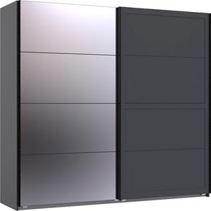 Farbe: Farbe: Graphit, Farbe Korpus: Graphit, Farbe Türen: Graphit, Farbe Griffe: schwarz, Farbe Innendekor: Line grey, Farbe Einlegeböden: Line grey, Farbe Kleiderstangen: alu, Farbhinweise: Bitte beachten Sie, dass bei Online-Bildern der Artikel die Farben auf dem heimischen Monitor von den Originalfarbtönen abweichen können., Ausstattung & Funktionen: Anzahl Einlegeböden: 2, Anzahl Einlegeböden groß: 2, Anzahl Kleiderstangen: 2, Anzahl Kleiderstangen groß: 2, Anzahl Türen: 2 St., Art Einlegeböden: variabel einsetzbar, Art Griffe: Griffleiste, Art Türen: Schwebetüren, Maßangaben: Breite: 180 cm, Tiefe: 65 cm, Höhe: 208 cm, Gewicht: 141 kg, Länge Kleiderstangen groß: 87 cm, Belastbarkeit Kleiderstange maximal: 30 kg, Breite Einlegeböden: 87 cm, Tiefe Einlegeböden: 50 cm, Belastbarkeit Einlegeböden maximal: 15 kg, Hinweis Maßangaben: Alle Angaben sind ca.-Maße., Material: Material: Spanplatte, Material Korpus: Spanplatte, Oberflächenmaterial Korpus: Kunststoff, Oberflächenmaterial Front: Kunststoff, Material Türen: Spanplatte, Material Kleiderstangen: Metall, Material Griffe: Metall, Material Oberboden: Spanplatte, Material Beschläge: Metall, Material Rückwand: Hartfaserplatte, Material Bodenträger: Metall, Material Einlegeböden: Spanplatte, Optik/Stil: Oberflächenbeschichtung: Folienbeschichtung, Lieferung & Montage: Lieferzustand: zerlegt, Art Montage: stehend montierbar, Aufbauhinweise: inklusive Aufbauanleitung - eine zweite Person zum Aufbau wird empfohlen, Hinweise: Zubehörartikel: Einlegeböden Artikel-Nr. 488856, Schubkasteneinsatz Artikel-Nr. 740776, Inneneinteilung Artikel-Nr. 522500, Schrankbeleuchtung Artikel-Nr. 752073, Selbsteinzug Art. Nr. 752673, Wissenswertes: Herstellungsland: Made in Germany, Serie: Serie: Chalet