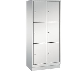 CLASSIC Fächerschrank mit Sockel, 2 Abteile, je 3 Fächer, Abteilbreite 400 mm, lichtgrau. Anlieferung = montiert. Höhe = 1800 mm. Tiefe = 500 mm. Breite = 810 mm. Korpusfarbe = lichtgrau RAL 7035. Türfarbe = lichtgrau RAL 7035. Verschlussart = Zylinderschloss verschiedenschließend. Anzahl Fächer = 6 Stück. Abteilbreite = 400 mm. Material = Stahlblech. Innenausstattung = ohne Innenausstattung. Innenbreite = 330 mm. Innenhöhe = 510 mm. Innentiefe = 465 mm. Türart = Flügeltür. Anzahl Schlüssel = 2 Stück. Fachhöhe = 540 mm. Fachbreite = 400 mm. Fachtiefe = 500 mm. Sockelhöhe = 100 mm. Konstruktion = verschweißt. Oberfläche = lackiert. Langlebige Stahlkonstruktion. Je Fach 1 Zylinderschloss mit je 2 Schlüsseln. 110° Türöffnungswinkel. Hochwertige Einbrennbeschichtung für hohe UV- und Korrosionsbeständigkeit. Sockel zurückgesetzt zum leichten Herantreten an den Schrank. Korpus aus stabiler Stahlkonstruktion mit hochwertiger Einbrennbeschichtung für hohe UV- und Korrosionsbeständigkeit. Auf 100 mm hohem Sockel, mit Kunststoffgleitern als praktischem Schrank- und Fußbodenschutz, vorne zurückgesetzt und oberhalb mit Luftdurchlass. Zylinderschlösser mit je 2 Schlüsseln, Schließkreis bis 1000 verschiedene Schließungen, Tür mit Anschlagsdämpfer, Türaufhängung oben und unten in Drehbolzen. Montierte Anlieferung.