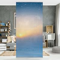 Raumteiler Material:- Textil: federleichtes, widerstandsfähiges Gewebe aus 100% Polyester- Größe: 250cm Höhe x 120cm Breite- Lichtdurchlässiger Stoff- Seidenmatte, glatte Oberfläche- 100% knitterfreies und reißfestes Raumteiler-Textil- Oeko-Tex Standard 100-Zertifizierung- Sicheres Textil (Brandschutzklasse B1)Raumteiler Halterung:Transparente Halterung- Schiene & Beschwerung: transparente Halterung und Beschwerung aus Hartplastik mit verschiebbaren Hängeösen- Sehr leichte Wand- oder Deckenmontage: einfach an gewöhnlichen Rundhaken aufhängen- Passgenaues Raumteiler-Textil: schließt exakt mit Halterung ab- Schwebeeffekt: kaum sichtbare Schiene und Beschwerung, Motiv scheint durch- Verwendung alternativer Halterungen problemlos möglich- Halterung ist bereits vormontiertProfessioneller Druck:- Raumteiler-Motiv beidseitig sichtbar- Fasertiefer eingedampfter Sublimationsdruck- Brillante, realistische Farben- Maximale UV-Resistenz: kein Ausbleichen der Farben- Bessere Umweltverträglichkeit als bei herkömmlichen TextildruckverfahrenFlexible Anwendung:- Raumtrenner zur optischen Teilung und Abgrenzung von Bereichen- Vorhang oder Gardine vor Glasfronten und Fenstern- Schiebegardine (mit entsprechenden Schiebegardinen-Systemen)- Schöner Blickfang an sonst kahlen Wänden- Flächenvorhang vor offenen Regalen oder MöbelstückenLieferumfang:- Raumteiler mit Motiv- Halterung optional- Sicher verpackt- Haken & Dübel nicht im Lieferumfang enthalten