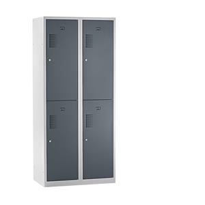 AMSTERDAM Garderobenschrank, halbhohe Fächer, Breite 800 mm, 4 Fächer, lichtgrau / basaltgrau. Anlieferung = montiert. Höhe = 1800 mm. Tiefe = 500 mm. Breite = 800 mm. Korpusfarbe = lichtgrau RAL 7035. Türfarbe = basaltgrau RAL 7012. Verschlussart = Zylinderschloss verschiedenschließend. Anzahl Abteile = 2 Stück. Anzahl Fächer = 4 Stück. Abteilbreite = 400 mm. Material = Stahlblech. Abteilhöhe = 1800 mm. Innenausstattung = 1 Kleiderstange, 3 Haken. Ausführung = Belüftung durch Lochbild in der Tür. Innenbreite = 398 mm. Innenhöhe = 835 mm. Innentiefe = 470 mm. Türart = Flügeltür. Anzahl Schlüssel = 2 Stück. Fachhöhe = 835 mm. Fachbreite = 400 mm. Fachtiefe = 500 mm. Sockelhöhe = 60 mm. Konstruktion = geschweißt. Oberfläche = pulverbeschichtet. Robuster Umkleideschrank mit variabler Breite. Langlebige Funktionalität durch pulverbeschichteten Stahl. Raumsparend durch übereinanderliegende Fächer. Verschiedene Türfarben verfügbar. Lochbild für optimierte Luftzirkulation. Mit Kleiderstange und Haken in jedem Fach. Ideal in Lager, Werkstätten, Sportvereinen u.v.m. Der stabile Garderobenschrank aus Stahl mit lichtgrauem Korpus ist ein echtes Raumwunder: Wählen Sie entsprechend Ihrem individuellen Platzangebot die Breite und Anzahl der Abteile und Fächer sowie die Türfarbe des Spindschranks. Durch die halbhohe, übereinander liegende Fächerkonstruktion maximieren Sie die Menge an persönlichen Schließfächern bei geringem Raumbedarf. Jedes Fach verfügt über eine Kleiderstange und 3 Haken zur Aufbewahrung von Kleidung. Ein Lochbild in der Tür garantiert dabei die optimale Belüftung. Zur Personalisierung stehen standardisierte Etikettenhalter (30 x 50 mm) an den Türen bereit. Diese lassen sich bis zu 90 Grad öffnen. Montierte Anlieferung.