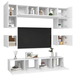 8-tlg. TV-Schrank-Set Weiß HolzwerkstoffAusgestattet mit viel Stauraum für die Organisation verschiedener Gegenstände wird dieses hängende TV-Schrank-Set definitiv eine praktische und auffällige Ergänzung in Ihrem Zuhause sein. Die TV-Schränke werden an der Wand befestigt und sind somit eine zeitlose Ergänzung für Ihr Zuhause. Diese TV-Möbel sind ideal zum Ausstellen oder Aufbewahren von Gegenständen, die Sie gut organisiert und griffbereit haben möchten. Außerdem lässt sich das Fernsehschrank-Set einfach mit einem feuchten Tuch reinigen. Farbe: WeißMaterial: HolzwerkstoffZusammenbau erforderlich: JaLieferung enthält:2 x TV-Schrank: 80 x 30 x 30 cm (B x T x H)4 x TV-Schrank: 60 x 30 x 30 cm (B x T x H)2 x TV-Schrank: 30,5 x 30 x 30 cm (B x T x H)Zusammenbau erforderlich: JaBitte beachten Sie: Diesen Artikel erhalten Sie in einem ",umaufgebauten Zustand",, d.h. Sie müssen ein wenig handwerklich tätig werden. Hierzu liegt dem Paket neben einer sehr leicht verständlichen Anleitung auch alle zum Zusammenbau benötigten Schrauben, Verbinder etc. bei. Lediglich Werkzeug wie Schraubendreher, Hammer etc. müssen Sie bitte selber mitbringen. Ansonsten: SIE SCHAFFEN DAS!