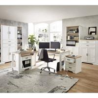 Aktenschrank Komplett Set JÜLICH-36 in Pinie hell mit Artisan Eiche Nb. Die Büromöbelserie JÜLICH-36 bietet alles was das Herz für's Büro begehrt. Mit seinen vielen verschiedenen Teilen und praktischen Schrank-Regal Kombinationen sowie den Erweiterungen des Schreibtisches bist du in deinem Büro optimal ausgestattet und erhÃltst effizienten Stauraum mit tollem Design. Die Möbel sind zudem neben Pinie hell auch in Graphit erhÃltlich und können auch prima kombiniert werden. Der schicke oldschool Charme mit liebevollen Details in Artisan Eiche, der an den Landhaus- oder den antiken Wohnstil erinnert, bringt Gemütlichkeit in dein Büro, ohne auf praktischen Nutzen zu verzichten. Materialdaten OberflÃchen: Korpus: E1-QualitÃtsspanplatte mit Melaminharzbeschichtung Front: MDF Dekor / Farbe: Pinie hell mit Artisan Eiche Nb. Griffe: Metall, Antik Füße: Sockel mit Nagelgleitern Türen: gedÃmpfte Scharniere SchubkÃsten: Softclose-Funktion mit Selbsteinzug BeschlÃge und Scharniere: Metall Lieferumfang Produktinformation Maßangaben: 1x Aktenschrank Komplett Set bestehend aus: 1 Aktenschrank mit 4 Softclose-Türen, 2 Softclose-SchubkÃsten mit Selbsteinzug, 2 Böden, B/H/T: ca. 86/204/38 cm 1 Aktenregal mit 2 Softclose-Türen, 3 offene FÃcher, 2 Böden, B/H/T: ca. 86/204/38 cm 1 Regal mit 5 offenen FÃchern, 4 Böden, B/H/T: ca. 43/204/38 cm 1 Mehrzweckschrank mit 2 Softclose-Türen, 2 Softclose-SchubkÃsten mit Selbsteinzug, 1 Boden, B/H/T: ca. 86/127/38 cm 1 Rollcontainer mit 3 Softclose-SchubkÃsten mit Selbsteinzug, 4 Rollen (hinter Sockelleiste), B/H/T: ca. 54/62/39 cm 1 Rollcontainer mit 1 Softclose-Schubkasten mit Selbsteinzug, 1 offenes Fach, 4 Rollen (hinter Sockelleiste), B/H/T: ca. 54/62/39 cm 1 Schreibtisch mit 1 Schreibtisch-Gestell, 1 Schreibtischplatte, B/H/T: ca. 160/76/80 cm 1 Schreibtisch-Winkel, B/H/T: ca. 120/76/50 cm allgemeine QualitÃtsmerkmale: widerstandsfÃhige Beschichtung strapazierfÃhige und lichtechte OberflÃchen hohe Kratz- und Stoßfestigkeit hochwertige Metallscharniere und -beschlÃge Schubkastenauszüge mit Softclose-Funktion und Selbsteinzug Türen mit Softclose-Scharnieren (gedÃmpfte Scharniere) Montage Lieferung: Lieferung zerlegt zur Selbstmontage einfache, bebilderte Montageanleitung schneller Aufbau durch intelligente Konstruktion Lieferung erfolgt per Spedition mit telefonischer Avisierung 2-Mann-Handling, frei Verwendungsstelle Weitere Hinweise Elegantes und zeitloses Design Hochwertige MetallbeschlÃge Bietet viel Stauraum Pflegeleichte OberflÃche Einfacher und schneller Aufbau