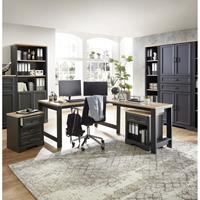Büro Kombi inkl. Schreibtisch JÜLICH-36 in Graphit mit Artisan Eiche Nb. Die Büromöbelserie JÜLICH-36 bietet alles was das Herz für's Büro begehrt. Mit seinen vielen verschiedenen Teilen und praktischen Schrank-Regal Kombinationen sowie den Erweiterungen des Schreibtisches bist du in deinem Büro optimal ausgestattet und erhältst effizienten Stauraum mit tollem Design. Die Möbel sind zudem neben Graphit auch in Pinie hell erhältlich und können auch prima kombiniert werden. Der schicke oldschool Charme mit liebevollen Details in Artisan Eiche, der an den Landhaus- oder den antiken Wohnstil erinnert, bringt Gemütlichkeit in dein Büro, ohne auf praktischen Nutzen zu verzichten. Materialdaten | Oberflächen: Korpus: E1-Qualitätsspanplatte mit Melaminharzbeschichtung Front: MDF Dekor / Farbe: Graphit mit Artisan Eiche Nb. Griffe: Metall, Antik Füße: Sockel mit Nagelgleitern Türen: gedämpfte Scharniere Schubkästen: Softclose-Funktion mit Selbsteinzug Beschläge und Scharniere: Metall