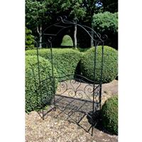 Artikel-Nr. 3510196 Maße: ca. 124x200x48 cm (Breite x Höhe x Tiefe) Farbe: schwarz Material: Metall Max. Belastbarkeit: 150 kg Bank mit Rosenbogen aus schwarzem Metall Gewicht: ca. 16,4 kg