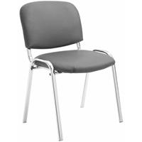 Stapelbarer Besucherstuhl Ken Neben Optik und zeitlosem Design zeichnet sich dieser Lehnstuhl besonders durch seine gepolsterte Sitzfläche aus, die auch längere Sitzphasen nicht anstrengend werden lässt. Die Sitzfläche und die Rückenlehne sind mit einem pflegeleichten Kunstlederbezug versehen. Standsicherheit und Stabilität werden durch das Vierfußgestell aus Metall in Chromoptik gewährleistet. Zudem ist dieser Konferenzstuhl bis zu vier Stühlen stapelbar und kann platzsparend gelagert werden. Dadurch eignet er sich ideal für Messen, Veranstaltungen oder ähnliches. Materialzusammensetzung Sitzbezug: Kunstleder (100% Polyurethan) Sitz: Bezug: feinstes Kunstleder Sitz und Rückenlehne bequem gepolstert Angenehme Sitzposition durch Rückenlehne Gestell: Material: Metall in Chromoptik Bodenschoner Fußkappen Stabiles Vierfußgestell Besonderheiten: Stapelbar Pflegeleichte Oberflächen Stabile Konstruktion & strapazierfähiger Bezug Pflegehinweise: Leichte Verschmutzung mit feuchtem Baumwolltuch