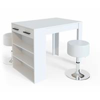 Der Bartisch Respose ist kratzfest und pflegeleicht durch die hochwertige Melaminharzbeschichtung. Verstaut, doch immer griffbereit – stellen Sie Ihre Gläser, Gewürze oder Backzutaten in die praktischen Fächer. Die Hocker sind 360° frei drehbar und haben eine stufenlose Höhenverstellung von 13 cm. Die Gesamtmaße betragen bei dem Bartisch 67 x 77,5 x 100 cm (BxHxT) und bei dem Hocker Ø 38,5 x 52 – 65 cm (BxH). Im Lieferumfang enthalten sind der Bartisch, zwei Hocker, eine bebilderte Montageanleitung und das notwendige Montagematerial. Dieser Bartisch ist auch eine perfekte Alternative für kleine Wohnungen mit begrenztem Platzangebot. Wir sind seit mehr als 15 Jahren einer der größten Onlinehändler Europas und passionierte Spezialisten im Bereich Möbel und Wohnkultur. Die von uns in Deutschland entwickelten Möbel verbinden hohen Designanspruch mit kosteneffizienter Fertigung und hochwertiger Materialqualität. Mit mehr als 130 Mitarbeitern und 6 Niederlassungen auf der ganzen Welt stehen
