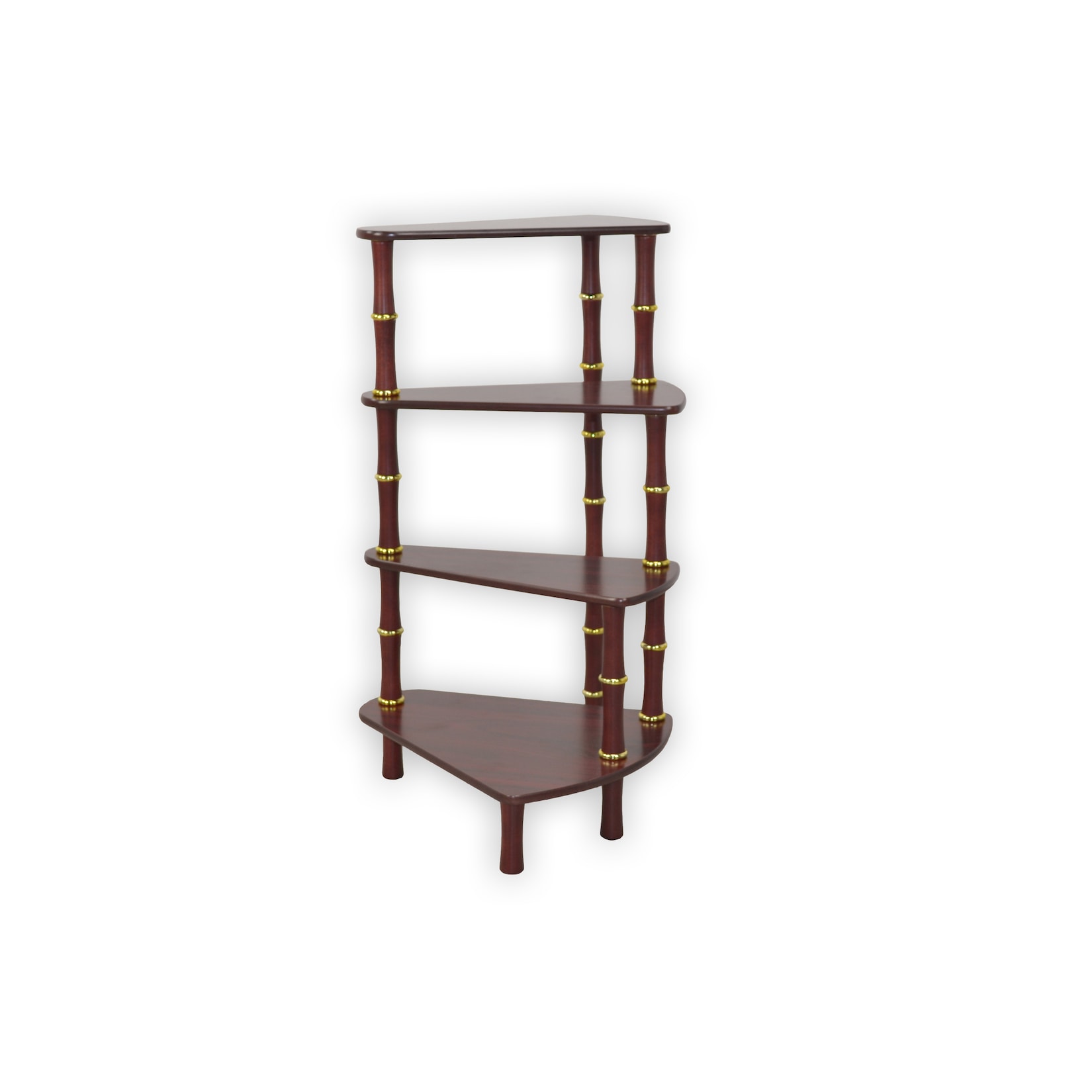 Blumentreppe mit 4 Stufen aus MDF, Beine aus Massivholz Gummibaum, kombiniert mit messingfarbenen Metallscheiben. Die pflegeleichten, glatten Oberflächen sind holzfarben lackiert bzw. gebeizt und lackiert. Stellfläche je Boden ca. 24 cm. Lieferung erfolgt