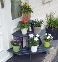 Mit diesem anthrazitfarbenen Eckelement einer Blumentreppe lassen sich ideal Hausecken verschönern. Zusammen mit dem als separaten Zubehör bestellbaren geraden Element ergeben sich verschiedene Kombinationsmöglichkeiten. Aber auch einzeln bietet dieses Eckelement einen schönen Anblick. Gefertigt aus massivem Kiefernholz, wetterfest imprägniert – für innen und außen. Maße: B 87 x T 59 x H 62 cm; Gewicht ohne Verpackung: 6,25 kg