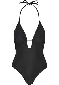 Dieser Badeanzug hält sich lediglich halbbedeckt! Aus umweltfreundlicher, recyceltem Polyester gefertigt kombiniert er Bikini mit Badeanzug auf geschickte Weise. Er wird über Bänder am Hals und am Rücken geschlossen. Der vorderseitige Ausschnitt fällt extra tief. Rückseitig lässt er viel Raum für den Rücken.