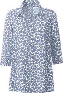 Herz ist Trumpf bei dieser Bluse und zwar allover als attraktiver Druck. Hemdkragen mit offenem V und durchgehender Knopfleiste mit farblich abgestimmten Knöpfen. Figurgünstige, leichte A-Form mit leicht abgerundetem Saum. 3/4-Ärmel mit knöpfbaren Manschetten. 100% Viskose. Maschinenwäsche.