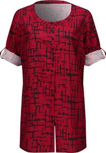 Schmeichelnde Longbluse in moderner, offener Form im ausdrucksstarken Grafik-Dessin. Rundhals-Ausschnitt mit kurzer Knopfleiste. Formgebende Brustabnäher. Die 3/4-Ärmel lassen sich auf Halbarm hochkrempeln und fixieren. Extra hohe Seitenschlitze.