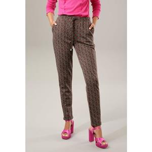 Bezaubernde Hose von Aniston CASUAL. Farbenfrohes, graphisches Muster. Bequemer Gummizugbund mit Bindeband, 2 Eingrifftaschen und fixierter Umschlag am Beinabschluss. Den passenden Blazer dazu gibt es auch. Figurumspielende Schlupfhose. Innenbeinlänge in Gr. 36 ca. 73,5 cm. Fußweite ca. 30 cm. Elastische Jacquard-Qualität aus Polyester-Viskose-Elasthan. Maschinenwäsche.
