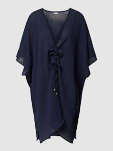 Legere Tunika in Knitter-Optik mit tiefem V-Ausschnitt und Seitenschlitzen, kurze, weit geschnittene Ärmel, Kordelzug-Detail auf der Vorderseite, Material 100% Baumwolle.