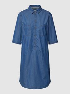 Reine Biobaumwolle verleiht diesem komfortablen Kleid von camel active ein angenehmes Tragegefühl. Die natürlichen Textilfasern sind saugfähig, sanft zur Haut und halten alltäglichen Belastungen stand. Für einen authentischen Wascheffekt wurde der Stoff dem Indigo-dye-Verfahren unterzogen. Bei der Reinigung sind die Pflegehinweise im Etikett zu beachten. Sportliche Elemente sind die zwei aufgesetzten Brusttaschen und der abgerundete Saum. An der Seitennaht ist ein Markenlabel angebracht.