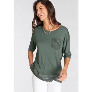 Gut kombinierbares 3/4-Arm-Shirt für Frauen von Laura Scott mit romantischer Spitze. Mit einem hüftlangen und weiten Schnitt. Kombinierbar für Freizeitaktivitäten oder den Wochenende-Look. Das Oberteil ist dank des weichen Single Jerseys angenehm zu tragen.