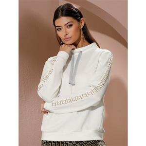Für funkelnde Augenblicke: herrlich weiches Sweatshirt in hochwertiger Modal-Qualität. Der kontrastfarbig abgesetzte Schriftzug entlang der langen Ärmel ist mit glitzernden Zier-Steinchen besetzt. Raffiniert: der schmeichelnde Kragen samt Tunnelzug und schimmernden Bindebändern. Schmeichelnde, schräge Seitennähte. 50% Modal, 44% Polyester, 6% Elasthan. Maschinenwäsche.